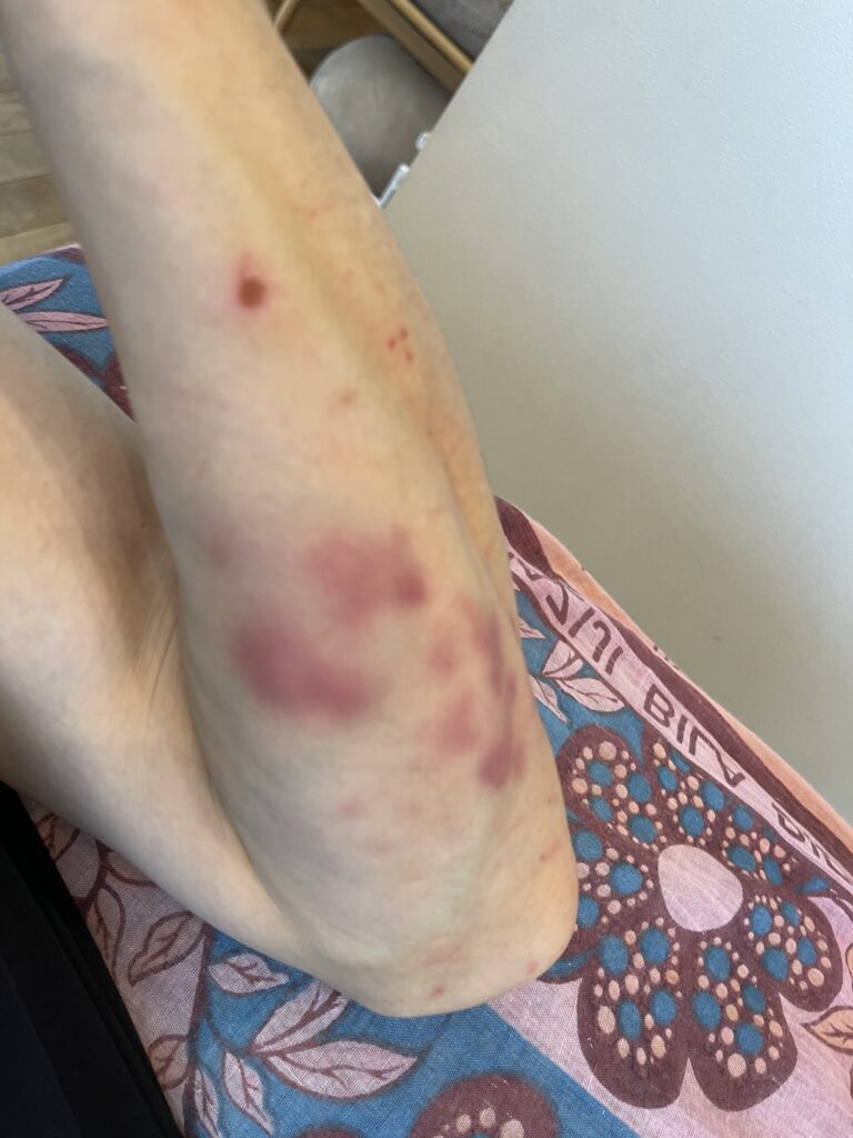 家に戻ったら子供たちに→「パパ腕がヤバい事になってるよ!!」って言われてみてみたら、どこでぶつけたのか、、両腕がDVを受けたみたいにアザだらけに笑、いや笑えないか^_^